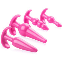 Skutečná lahůtka pro milovníky análního sexu. Čtyři gelové plugy v různých rozměrech a tvarech. Dokonalé jak pro ty, kteří s tímto způsobem hrátek teprve začínají, tak pro skutečné erotické odborníky. Všechny kolíky jsou vybaeny speciálními úchyty, které usnadňují manipulaci v průběhu zábavy. Jejich zúžené špičky zaručují komfort při aplikaci a další vypouklosti pak rozkošnou stimulaci.
