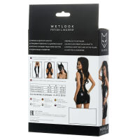 Vďaka týmto jedinečným šatám uvoľníte svoju dravú prirodzenosť. Lesklé šaty s kovovými cvockami zvýraznia váš nespútaný charakter, takže sa budete cítiť mimoriadne sebavedome. Určite to pocíti aj váš partner! Jedinečný materiál Wetlook je zmesou polyesteru (95%) a spandexu (5%), ktorý sa dokonale prispôsobí telu a priťahuje pohľady svojou lesklou textúrou. Šnurovanie vpredu a vzadu umožňuje úplné prispôsobenie, zdôrazňujúc siluetu a vytvárajúc jedinečný vizuálny efekt.