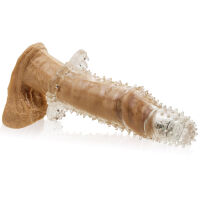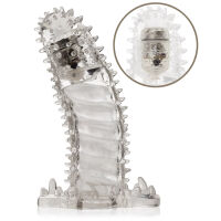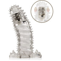 Gelový návlek na penis. Prodlouží váš penis až o 4 cm. Zakřivená špička návleku si bez problémů nalezne ženský tajemný G-bod a důkladně jej vymasíruje.. Po celé délce návleku jsou rozmístěny výstupky, které dokáží stimulovat vagínu a přivedou tak vaši partnerku na vrchol rozkoše , takže prožije úžasný orgasmus. Návlek má zabudované také dotykové vibrace. Postačí vložit do návleku váš penis a vibrace se samočinně spustí. U násady pomůcky jsou umístěny další dva stimulátory análu a klitorisu. Celková délka návleku je 14 cm, vnitřní průměr 3,5 cm. Pomůcka je vyrobena z elastické gelové hmoty, bez problémů se přizpůsobí každému penisu.