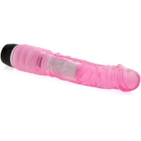 Gelový vibrátor s realistickým tvarem a strukturou penisu. Flexibilní tělo dilda je pokryto charakteristickými žilkami, zakončený pevným žaludem. Snadno vklouzne do pochvy a přinese potěšení a blaženou relaxaci během orgasmu. Vibrátor je měkký, velmi příjemný na používání, s vibracemi, jejichž intenzitu lze nastavit pohodlným tlačítkem. Pro zvýšení pocitu stimulace použijte větší množství zvlhčujícího gelu na vodní bázi. Díky tomu zajistíte hedvábný skluz a fenomenální pocity během penetrace.