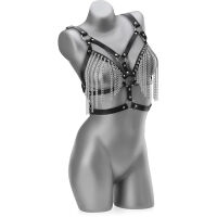 Extrémně provokativní, bezprudérní podprsenka BDSM s řetízky. Erotické prádlo ideální pro sebevědomé ženy s perverzní povahou a dominantní dispozicí. Podprsenka dokonale odhaluje prsa, která jsou zde nezakrytá a jen nenápadně zakrytá volně padajícími řetízky. Podprsenka probudí touhu a povzbudí vás k tvrdým hrátkám. Díky pohodlné regulaci obvodu a popruhům můžete přizpůsobit velikost vaší postavě.