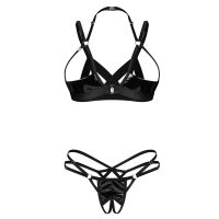 Otvorená podprsenka a tangá – odvážna súprava, ktorá rozpaľuje predstavivosť.