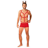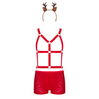 Pikantný, červený postroj a zvodné boxerky sú veľmi sexy a zmyselný komplet, pripravený na šibalstvá. Mimoriadne milým prvkom je čelenka s ušami soba, ktorá skvele dopĺňa celý outfit.
