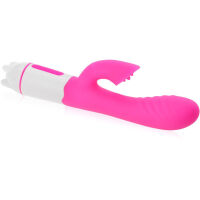 Multifunkční vibrátor s výstupkem na klitoris, který díky použití malých, pružných jazýčků účinně stimuluje knoflík ženské rozkoše. Ergonomický tvar, dva vibrační motory a kombinace penetrace se stimulací G bodu a klitorisu rychle vedou k orgasmu. Gadget je lehký a praktický, ideální pro každodenní masturbační chvilky. Díky vysoké flexibilitě je použití vibrátoru velmi příjemné, ideální pro ženy, které nemají rády tvrdé a tuhé vibrátory. Kombinace plastu ABS a lékařského silikonu je hygienickým a bezpečným řešením pro tělo.