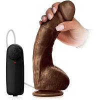Na koníčka? Na pejska? S tímto penisem opravdu můžete dělat vše, co budete chtít. Je 25 cm dlouhý a má téměř 5cm průměr! Ve spodní části penisu je umístěna přísavka, díky které si budete moci dovolit ještě víc! Vibrátor je v tělové barvě, mimořádně realisticky připomíná skutečný penis, má krásně vytvarovaný žalud, po celé délce jsou vystouplé žilky a jeho spodní část zdobí dvě varlata. Vibrátor má také rotační špičku, která vám umožní snadno nalézt váš G bod a dovede vás až k ohromujícímu orgasmu. Regulace rotačního pohybu se provádí pdíky přiloženému ovladači. Intenzitu rotací si můžete nastavit od delikátních jemných až po velmi silné. Nyní už musíte spoléhat pouze na vaši fantazii a mega mega orgasmus!