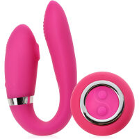 Vibračně-sací masážní přístroj pro páry k použití při sexu. Multifunkční vibrátor se dvěma kompatibilními motory, z nichž jeden je vybaven inovativním systémem vzduchové masáže. Použití této moderní technologie v sexuálních pomůckách je skutečným průlomem v poskytování rozkoše a potěšení. Vibrátor má 36 vibračních funkcí kombinovaných s funkcí sání, pohodlně ovládaných bezdrátovým dálkovým ovladačem. Penetrační koncovka má navíc charakteristický zářez, díky kterému ještě účinněji stimuluje G bod. Kombinace takového multidimenzionálního laskání zcela změní váš sex a přinese nepopsatelnou rozkoš oběma partnerům. S tímto sexuálním gadgetem máte simultánní orgasmus na dosah ruky. Masažér je také skvělým masturbátorem pro ženy, který umožňuje sólovou zábavu. Gadget je voděodolný, vyrobený z měkkého silikonu a ABS plastu