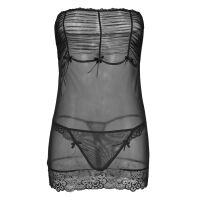 Horná časť bielizne je bez ramienok, čo ešte viac nabáda na intímne hry, a vďaka nariaseniam na hrudi pridáva štipku vzrušujúcej tajomnosti. Dolná časť je zdobená čipkou s kvetinovým vzorom, ktorá Vám dodáva vycibrenú eleganciu.