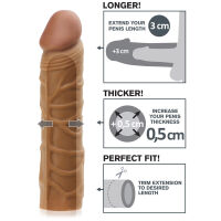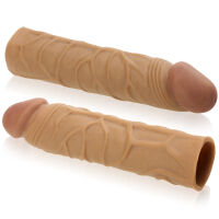 Zaskočte svoji partnerku rozměrem svého penisu! Návlek mrknutím oka prodlouží a zvětší objem vašeho penisu.Každá žena pohledem na něj oněmí z úžasu a prožitky, které jí dopřejete ji přivedou na samotný vrchol rozkoše.Spousta žilek, zvětšený žalud, velmi příjemná na dotyk kůže cyberskin, to vše se přičiní k tomu, že se bude přímo vznášet rozkoší. Návlek navíc dokáže oddálit ejakulaci, takže se budete moci radovat z velmi dlouhého sexu se svojí milovanou partnerkou. Konečně ji dokážete uspokot tak, jak si to vždy přála. Návlek je mimořádně elastický. Roztahuje se a dokáže se přizpůsobit každému rozměru .