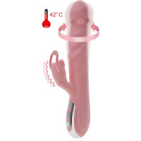 Hedvábně hladký, silikonový rotační vibrátor s funkcí ohřevu až do 42 °C a inovativním zajíčkem pro klitoris. Vibrátor pro nejnáročnější ženy, které chtějí multidimenzionální potěšení a rozkoš na nejvyšší úrovni. Vibrátor má dva výkonné vibrační motory - v hlavní části a v zajíčkovi. Vibrační motory jsou ovládány společně a mají 20 vibračních a pulzačních funkcí. Vibrace v zajíčkovi uvádějí do pohybu jazýčky i tykadélka , které obratně stimulují klitoris, což vede k intenzivnímu orgasmu během několika okamžiků. Rotační motor má 3 úrovně intenzity pohybu a výstupky na horní straně vibrátoru během každého otočení úžasně stimulují vnitřek pochvy, zejména G bod. Rotační motor, vibrační motor a funkci vyhřívání lze používat společně nebo samostatně. Vibrátor má voděodolnou konstrukci. Můžete jej s důvěrou používat při relaxaci ve vaně nebo sprše. Snadno se také čistí.