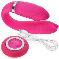 Vibračně-sací masážní přístroj pro páry k použití při sexu. Multifunkční vibrátor se dvěma kompatibilními motory, z nichž jeden je vybaven inovativním systémem vzduchové masáže. Použití této moderní technologie v sexuálních pomůckách je skutečným průlomem v poskytování rozkoše a potěšení. Vibrátor má 36 vibračních funkcí kombinovaných s funkcí sání, pohodlně ovládaných bezdrátovým dálkovým ovladačem. Penetrační koncovka má navíc charakteristický zářez, díky kterému ještě účinněji stimuluje G bod. Kombinace takového multidimenzionálního laskání zcela změní váš sex a přinese nepopsatelnou rozkoš oběma partnerům. S tímto sexuálním gadgetem máte simultánní orgasmus na dosah ruky. Masažér je také skvělým masturbátorem pro ženy, který umožňuje sólovou zábavu. Gadget je voděodolný, vyrobený z měkkého silikonu a ABS plastu