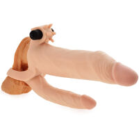Zintenzivněte potěšení své i partnera tím, že si dodáte jistotu v posteli díky okamžitému zvětšení penisu. Zvětšující erekční návlek s kroužkem na varlata a análním dildem zlepší vzhled vašeho penisu, oddálí ejakulaci a zlepší erotické pocity díky vibracím a dvojité penetraci. Váš partner si užije hluboké penetrace díky prodloužení penisu o 2,5 cm a zvětšení objemu o 30%. Návlek je velmi realistický a velmi pružný. Odpovídá většině velikostí a zároveň je dostatečně těsný, aby vám pomohl milovat se déle. Super měkký materiál svytváří dojem druhé kůže - jen mnohem lépe! Vnější povrch je texturován realistickými žilkami a má ?baňatou? špičku pro nejintenzivnější a nejpřirozenější zážitek. Hladký vnitřní kanál obejme váš penis pro maximální kontakt a stimulaci. Kromě toho použití tenkého kuželovitého análního dilda umožňuje hlubokou a dvojitou penetraci bez nutnosti zapojení dalších osob nebo další sexuální pomůcky. Pro nejrealističtější efekt ponořte nástavec před hrátkami do teplé vody. Pro nejlepší zážitek používejte při pohlavním styku dostatek lubrikantů na vodní bázi.