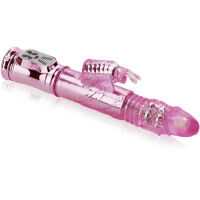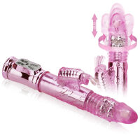 Vibrátor je vyroben z měkkého a velmi příjemného na dotyk gelu. Zaručuje neuvěřitelně intenzivní rozkoš díky úžasné kombinaci posuvného pohybu, masážních kuliček a silně vibračního motýlka. Dovolte mu vklouznout do vaší štěrbinky a objevte jeho sílu poskytování rozkoše. Masážní perličky nádherně stimulují vagínu a navíc vibrátor posouvající se dopředu a dozadu vás přivede na samotný vrchol rozkoše.Do vašich hrátek můžete zapojit také vibračního motýlka se samostatným vibračním systémem. Tento vyjímečný gadget má až 5 rychlostí posuvného pohybu nahoru dolů a k tomu 5 rychlostí otáček masážních kuliček a 5 funkccí vibrací umístěných v motýlkovi. Masážní kuličky mají ještě jednu nepřehlédnutelnou přednost ? je možné měnit směr jejich otáček.