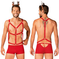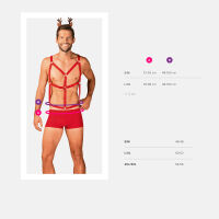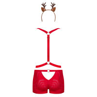 Pikantný, červený postroj a zvodné boxerky sú veľmi sexy a zmyselný komplet, pripravený na šibalstvá. Mimoriadne milým prvkom je čelenka s ušami soba, ktorá skvele dopĺňa celý outfit.
