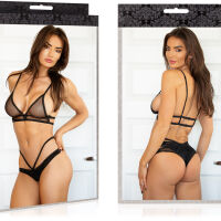 Sexy sada smyslného erotického prádla pro ženy. Sada se skládá z podprsenky a tang z jemné síťoviny a ozdobných elastických ramínek. Podprsenka má nastavitelná ramínka a trojúhelníkové košíčky, které krásně odhalují poprsí. Spodní prádlo je ideální pro každodenní nošení i pro erotické rande.