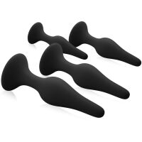 Bohatý komplet pro anální hrátky ? čtyři kolíky v různé velikosti se slnou přísavkou, vyrobené z velmi kvalitního sametového silikonu. Dokonalá sada jak pro amatory, tak pro specialisty ve stimulaci análu. Odlišný rozměr kolíků uspokojí začátečníky i zkušené, dokáže jim poskytnout takový rozměr rozkoše, po jakém v tom daném okamžiku právě nejvíce touží. Díky hladkému materiálu a ergonomickému tvaru kolíků je jejich aplikace mimořádně komfortní a celá zábava s nimi excitující již od prvního kontaktu. Přísavka poskytuje také možnost hrátek o samotě bez použití rukou. To vše proto, abyste se mohli radovat z anální rozkoše.