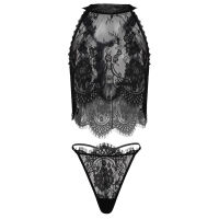 Košieľka bola vyrobená z jemnej, čiernej čipky, ktorá ako jemná hmla objíme vaše telo. Na chrbte sa nachádza otváranie, ktoré prebúdza predstavivosť, a šnurovanie, vďaka ktorému jedným pohybom odhalíte svoje lačné rozkoše prsia.