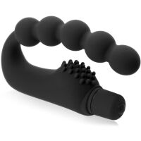 Masažér prostraty a hráze je unikátně navržený dvojitý stimulátor mužských erogenních bodů. Jeho ergonomický tvar umožňuje sočasnou stimulaci hráze i prostaty bez použití rukou, díky čemu se můžete vy věnovat sám sobě nebo svému partnerovi v těchto blahých chvílích! Dlší příjemn prožitky vám poskytne 10 programů silných vibrací. Gadget je vyroben z nejkvalitnějšího silikonu ? hmoty hypoalergické a absolutně bezpečné pro vaši kůži. Masažér má speciálně vyformovaný kuličkový tvar tak, aby odpovídal přesně anatomii muže. Speciální výstupky ideálnědráždí a laskají jemná místa mezivarlaty a análem. A to vše pouze a jen proto,aby było postaránoo správnou sexuální výkonnost muže a pro jejich nezapomenutelné prožitky.