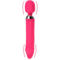 Oboustranný vibrátor 2 v 1 pro ženy s masažérem klitorisu a celého těla typu wand. Masturbátor se dvěma výkonnými, nezávislými vibračními motory, s možností jejich společného nebo samostatného zapnutí. Oba konce mají 12 vibračních a pulsačních funkcí. Při společném zapnutí je mohou používat i dvě ženy současně. Penetrační hrot má jemný tvar penisu, který se snadno zasune do pochvy a zároveň stimuluje G bod. Vychytávka je vyrobena z měkkého silikonu v kombinaci s ABS plastem. Je voděodolná, lze ji použít ve vaně nebo sprše. Snadno se také čistí.