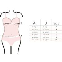 Horná časť bielizne je bez ramienok, čo ešte viac nabáda na intímne hry, a vďaka nariaseniam na hrudi pridáva štipku vzrušujúcej tajomnosti. Dolná časť je zdobená čipkou s kvetinovým vzorom, ktorá Vám dodáva vycibrenú eleganciu.
