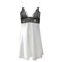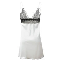 Je vyrobená z jemnej, svetlej satény vo farbe écru, ktorú dopĺňa čierna čipkovaná aplikácia zvýrazňujúca váš dekolt, už tak zvýraznený hlbokým výstrihom. Vďaka nastaviteľným ramienkam si košieľku prispôsobíte na svoju veľkosť. Dodatočný šarm pridávajú ozdobné mašličky na prednej strane ramienok. Dno košieľky je zakončené overlockom, čo dopĺňa atraktívny vzhľad spodnej bielizne.